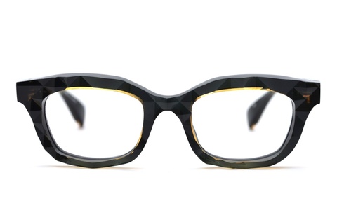 FACTORY900独自の立体転写の技術を用い、フロントに布目の表面処理を施したモデル。アセテートとは思えない石のような質感に加え、col.840(クリアグレー)をあえて艶を消し、半透明のすりガラス状にすることで、クラシカルな雰囲気にもどこか未来感を感じられます。