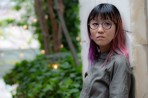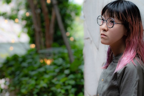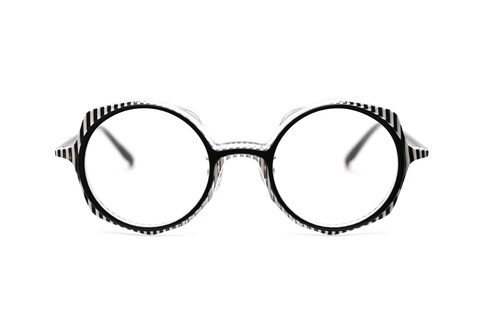 また、一見カジュアルなイメージが先行する「fats-002」ですが、その色使いからシックな印象を作りだし、ラウンド型のレンズに対しストライプ柄がお顔立ちを引き締めます。
