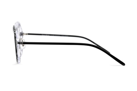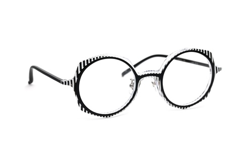 ラウンド型をトレースするように黒のラインを縁取りのように残し、正面から切削を施したことで、黒のストライプ柄が浮かび上がります。また背面に見えるクリアとストライプ柄が交わることで立体感を感じます。