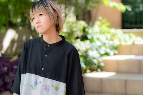 ご覧のようにアシンメトリーデザインとは思えない肌馴染みの良さがその使い勝手の良さを物語っています。その代わり、スタッフ松本も普段よりもアイラインをしっかり引くなど、目元のメイクには若干手を加え、お顔の印象がボケないように工夫をしています。
