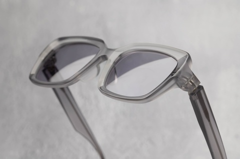 また、フレームの表面は全カラーともにマット加工を施してありますが、テレビジョンカット面のみに艶を残し、フラットなフロントにコントラストが生まれました。本来、こういった直線的でエッジーなモデルはシンプルといえどもクセが強くなりがちですが、マットカラー特有の肌馴染みの良さがそれらを打ち消します。
