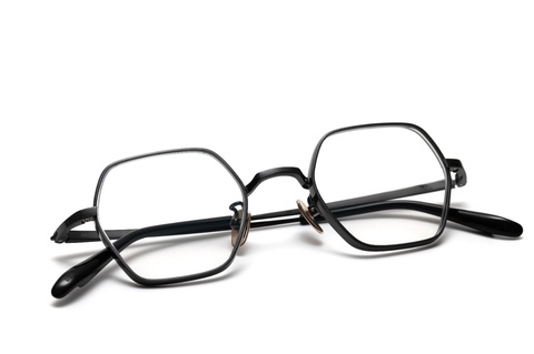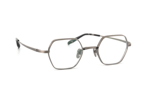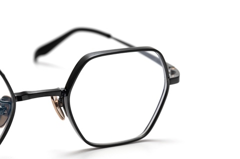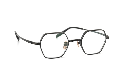 六角形という個性的な玉型が、メタルフレームのならではの細さにより顔馴染みが良く、同じ六角形型「RF-057」のようなカジュアルな印象とは異なり、シックなイメージを植えつけます。