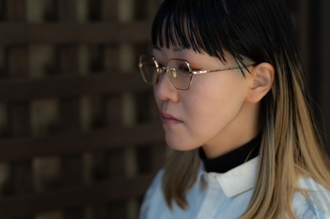 スタッフ松本には、どこか色気の漂う「col.01」ゴールドを掛けてもらいました。