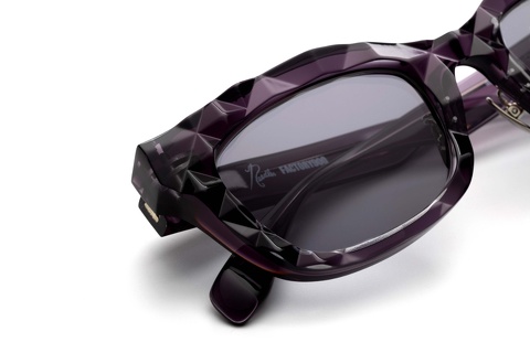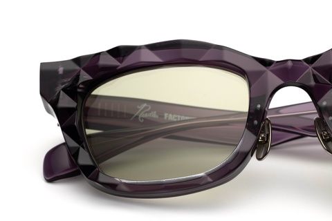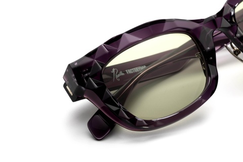 フレームカラーはNEEDLESを象徴とするパープルをベースに、トップにはクリアカラーを貼りわせることでダイヤモンドカット面の光沢がより艶やかに、硬質なディテールにどこか瑞々しさが感じ取れます。
