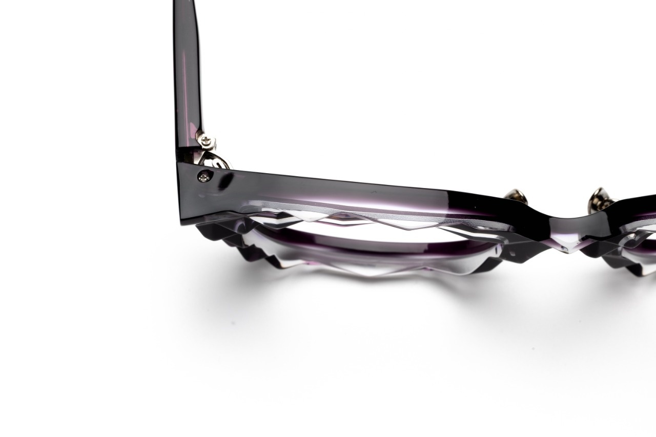 「RF-170」の別注色と同様にNEEDLESを象徴とするパープルをベースにしつつも、「RF-064C」はもうひと手間加えクリアグレイを貼り合わせた2層のカラーになります。