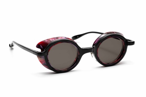 FACTORY900が得意とするアセテート素材を組み合わせたコンビネーションフレーム。古くは2004年に発表した「FA-063」等々、古くからブランドを知る皆さんには懐かしく、この数年でFACTORY900の存在を知った皆さんには非常に新しく未来感のあるデザインに映ると思います。