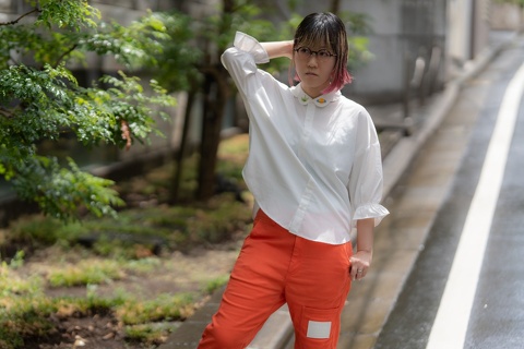 この春で第三弾となるVioRouとのコラボレーションモデルですが、FACTORY900 by VioRouでは最もサイズが小さく、女性の皆さんにご提案することを前提としてデザインされた「Hachi」PD(瞳孔間距離)58.5mmの松本にとってジャストサイズといえるサイズ感です。