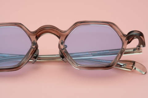 冒頭の写真にあったように、スタッフ松本に無色の状態で掛けてもらいましたが、特徴的な六角形がすっと顔に馴染んでしまうことは間違いありませんが、カラーレンズを組み合わせることでメリハリが生まれ、無色の状態に比べ表情も豊かになったように感じます。