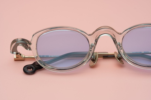 数年前は、クリアフレームとブルーのカラーレンズの組み合わせが非常に人気が高く、スタッフブログでも度々取り上げてきましたが、今回ピックアップした「Nora」に関しても相性はバツグンです。