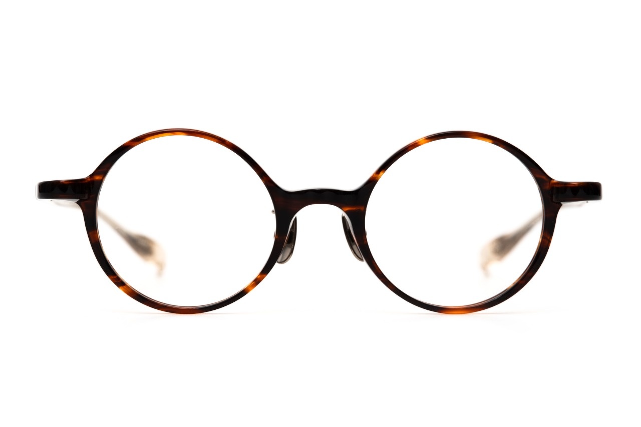モデル名の通り、王道ともいうべき丸メガネになりますが、数年前まではハードルが高いとされていたラウンド型も今では手にとっていただく機会が圧倒的に増え、メガネのデザインとしては定番といえる位置づけになったのではないでしょうか。特に我々の世代にとっての丸メガネはクラシカルなデザインの代表格であり、お洋服との組み合わせにも気を使いましたが、今となってはどんなスタイルに合わせても何ら違和感を感じません。