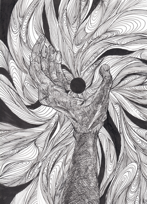 幾重の線が密集し渦のように描かれた様には、線との間隔や強弱によって奥行きや躍動感が生まれ、まさに渦のように力強く引き込まれるようでした。