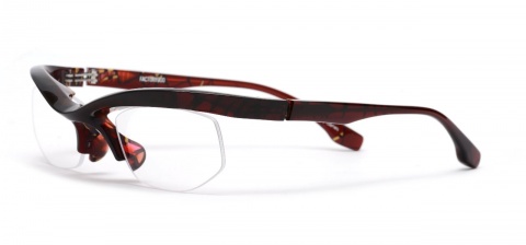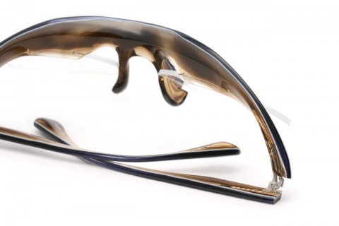 無駄を省きすっきりとした正面と対比し、フレームの奥行き(厚み)は十分な強度を持たせ、且つ、計算されたフレームカーブによりしっかりと顔をホールドしてくれます。
