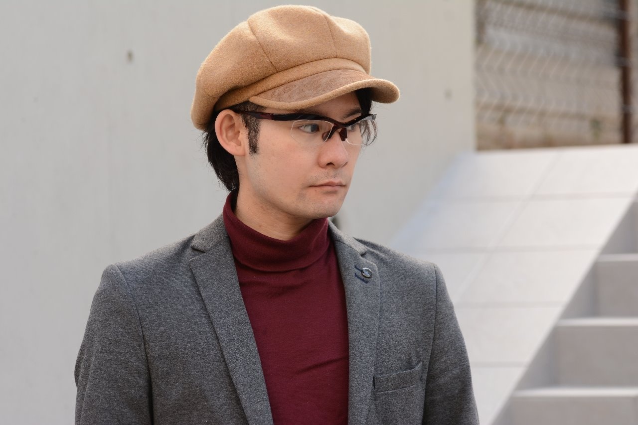 憎たらしいほど(←褒め言葉です)どちらのモデルもそつなく掛けこなす佐藤ですが、この日はキャスケット帽をかぶっていることで頭にボリュームがでるために、「FA-323」のようなボリュームのあるブローラインは、見た目の印象は若干ですが重く感じます。
