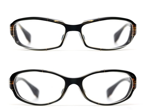 過去のブログでもご紹介したように、レンズシェイプ、レンズの天地幅など、両品番の違いがお分かりいただけるかと思います。また、このように真正面からは、「col.669」の特徴的な黄色は姿を現さず、見た目以上に落ち着いた印象になるかと思います。