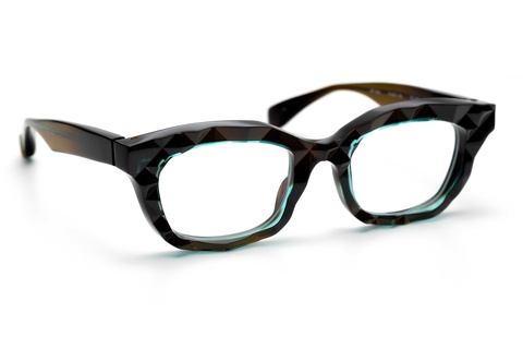 ご覧のように、見る角度・光の当たり方によって変化するダイヤモンドカット面の光沢と「col.565」(グリーン/茶)の美しい色合い、可能であれば是非自然光のもとで今一度お試しいただけたらと思います。