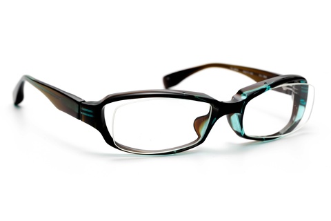 当然といえば当然のことですが、「RF-064」とは造形はもとより生地の厚みも全く異なるため、同じ生地を使用しているとはいえ色合いの雰囲気もまた一味違います。特に智元からテンプルにかけては鮮やかなグリーンの色合いがより鮮明に楽しめ、「FA-301」の流線形のフォルムと相まって未来感を感じさせる仕上がりです。