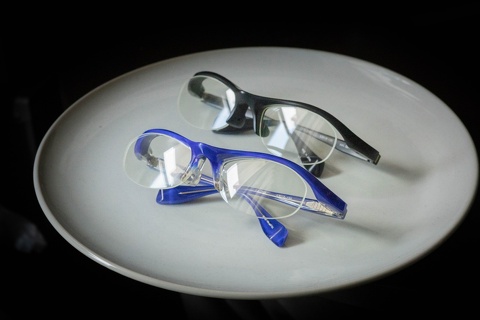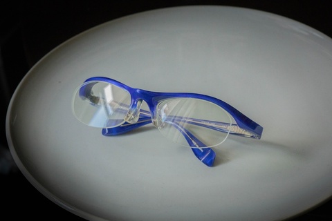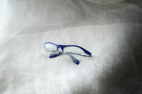 日常的かけるフレームとして、そしてビジネスシーンを想定すると、「col.001」(黒)など落ち着いたカラーが使いやすいカラーであることは間違いありませんが、それでも遊び心あるカラーは思わず手に取って、まじまじと眺め、そして心惹かれますよね。そんな鮮やかなブルーが「FA-298」にはあります。