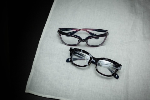 いかがでしたでしょうか?FACTORY900ならではの色合い。思わず手に取ってじっくり見たくなる美しさです。その美しさをお顔にのせた時、初めて完成されるわけですが、まず店頭にてご覧いただきたいと思います。特にオンとオフのスタイルが違われる方は、それぞれのスタイルでお越しいただくこともおすすめします。トータルでの見え方が変わることも踏まえて、じっくりお選びいただくとより楽しいライフスタイルを送っていただけるのかなと思います。落ち着いた色気を発する、「col.380 」purple/navy (パープル/ネイビー)、ぜひ店頭にてお試しください。