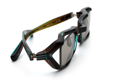特にカラーレンズが加わることでスクエア型のシェイプはより際立ち、特徴的なフロントリムの形状は目に触れにくくなるようです。なにより大き過ぎず、小さ過ぎず、このサイズ感はメガネとしてはもちろんサングラスとして考えても絶妙なバランスによって成り立っています。