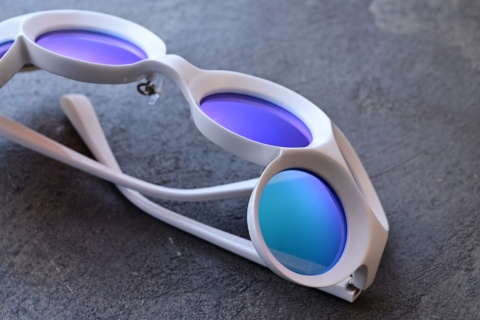 「col.001」と並び人気カラーの「col.853」には、鮮やかなブルーのミラーレンズを組み合わせ、近未来を感じさせるフューチャリステックな仕上がりに。