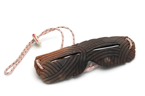 イヌイットが使用している遮光器から着想を得てデザインされた「FA-089」は、福井に隣接する京都の土を使い、1000度ほどの低温で焼き上げ仕上げたのち、桜の枝で染色した京都の組紐を組み合わせています。