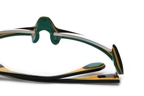 「FA-095」のカラーバリエーションは、その攻撃的なデザインを活かした鮮やかな色合いと、「col.001」(黒)や「col.425」(グレー)といったシンプルでシックな色合いと大きく分けて2通りのパターンが存在します。「FA-095」のデザインに惚れ込み、複数のカラーを所有されている皆さんもいらっしゃいますが、その多くはこれぞ900といわんばかりのカラーをチョイスされる皆さんと、アンダーリムというデザイン性を活かすため、あえてカラーはシックなものを選ばれる皆さんとハッキリと分かれます。