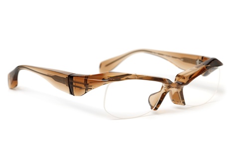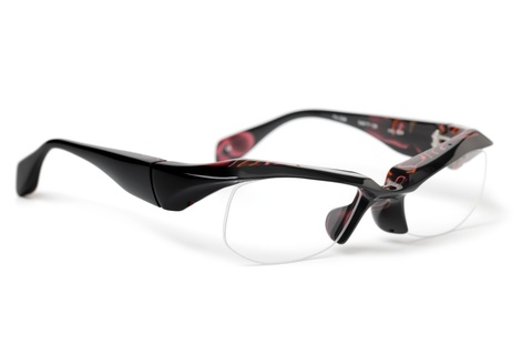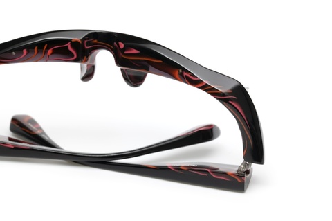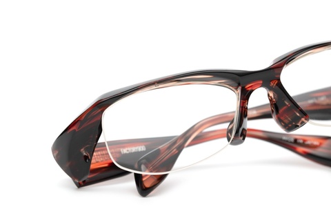 一見、黒のようにも見える「col.082」黒柄ですが、冒頭のスタイルサンプルで掛けているのがこちらのカラーです。所々に見える柄色は、お顔にのせた途端に肌と馴染み、実際はほとんど認識はできません。言い換えるとビジネスシーンにおいてもご使用いただきやすく、必要以上にメガネの個性が主張することを防ぎます。