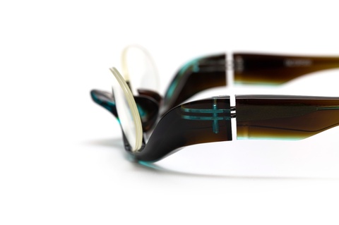 レンズシェイプは比較的小ぶりなオーバル型。この復刻に合わせ、レンズシェイプ、レンズの天地幅に手直しをすることも検討しましたが、その完成されたデザインにはあえて手を加えず、当時のまま完全復刻することになりました。