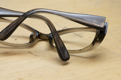 ご覧の通り、長年ご使用いただくなかでテンプルの外側まで完全に艶が落ち、所々に白濁が見受けられます。