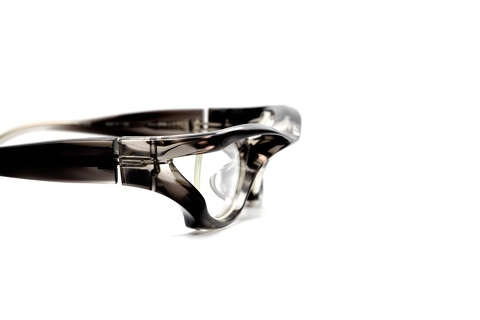 レンズと独立させたブローラインを大きく前面に押し出した奥行きのあるデザイン、庇のようにせり出た直線的なブローラインは「FA-230」の”それ”とも異なり、どこかアンバランスで荒々しさを感じさせます。
