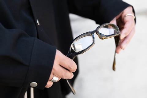 ご覧のように、なかなか写真では伝わりにくい「col.745」(シャドーグレー/グレー/クリアイエロー)、現時点で使用しているのはこちらの「FA-240」のみになりますが、ご試着の際は屋外など自然光のもとでもお試しいただけたらと思います。