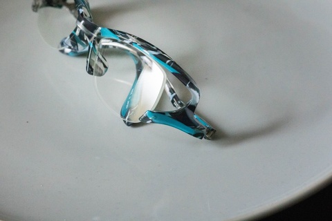 サイドだけでなく、上から見ても、立体的なデザインになっていることが一目瞭然です。レンズがクリアだとすこしわかりにくいですが、カラーレンズを入れるとさらにその造形美を楽しむことができ、また機能的にもすぐれていますね。