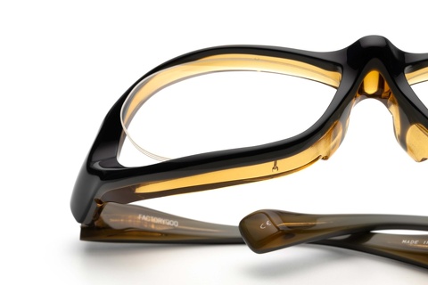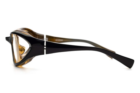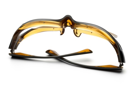 シャドーグレー/グレー/クリアイエローの3層からなるイタリア・マツケリ社の新色ですが、商品単体で撮影すると背面のクリアイエローが目に飛び込んできます。「FA-240」でも採用しているカラーではありますが、レンズシェイプが大きいこともあり「FA-301」の方が印象に残りやすいかもしれません。