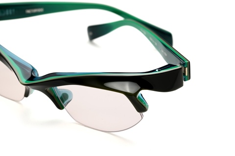 ブローフレームとして完成度の高い名作「FA-208」、躍動感のある「FA-248」、流麗な「FA-298」とブランドを代表するブローフレームが多数存在しますが、どのモデルとも異なるエッジーな「FA-323」はレンズシェイプなども含め、デザイナー田村の手掛けたニオイが感じ取れるデザインになっています。