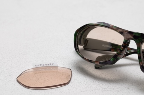 今回チョイスしたカラーは、もともとデモレンズに使用していたブラウンを、レンズメーカーに見本染色として発注し、コーティングは昨日のブログでもご紹介した「ヴィーナスガードコートパールRUV」を採用しています。写真ではカラーレンズの仕上がりが見本色のレンズより薄く見えますが、実際は見本のカラーにかなり近い仕上がりです。