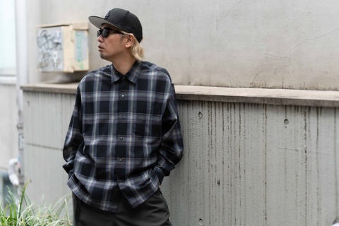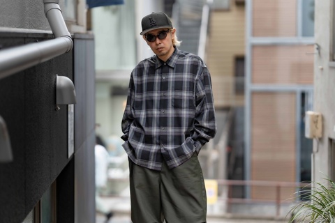 さてさて、そんな「FA-320」のサングラス仕様をストリートなスタイルに合わせてみました。レンズ濃度は84.1%のグレー、特に海外からご来店のお客様は濃度の濃いサングラスらしいサングラスを好まれる傾向にあり、濃度の濃いレンズをチョイスしました。