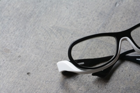 一見、平面的に見えるフロントパーツと、まるで一筆書きのような立体的なアンダーパーツを組み合わせることで、従来のメガネでは見ることの出来ない空間が生まれます。