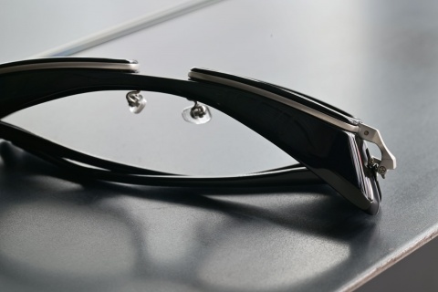 メタルパーツとのコンビネーションフレームになることで、テンプルも細く軽量化につながり。クリングスパッドを使用していることによって安定感がバツグンです。
