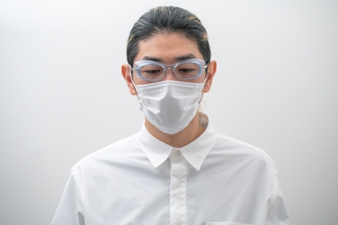 本来はバイカーズゴーグルとして発表した「FA-361」を流用し、医療の現場でご使用いただくことを前提として使いやすいカラーをチョイスしています。見た目はもちろん視野の確保を前提とし、周りの皆さんに威圧感を極力与えず、清潔感のあるクリアグレーとクリアブルーの2色展開です。
