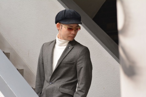 今日のコーディネートは、タートルネックとジャケットにキャスケット帽、寒くなってきたときの私の定番スタイル。(暖かいうえにラクなんです)