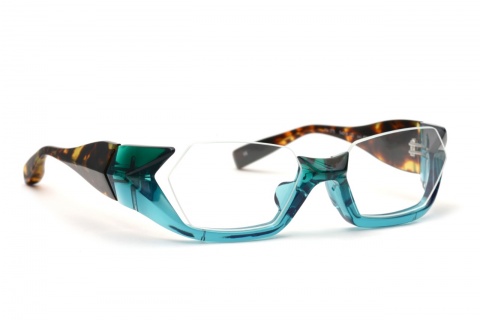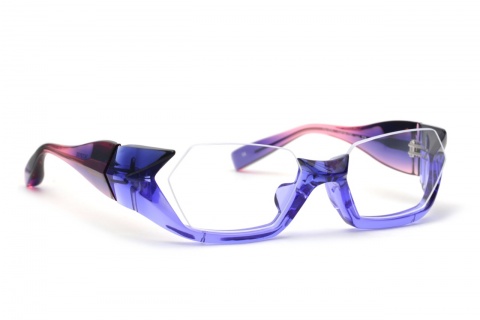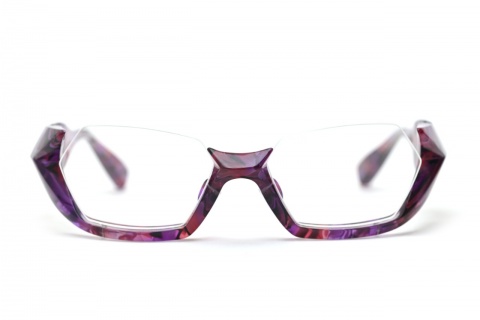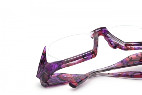その正体は、”多面体”といわれる面構成によってカタチづくられ、アグレッシブな「FA-095」とは対象的などっしりとした落ち着きのある印象に。そう、まさに"動"と"静"、同じ立体的なアンダーリムでありながら全く異なる個性を演出します。