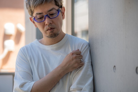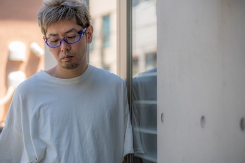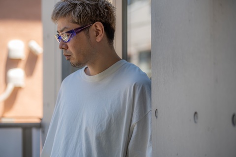 「FA-095」「FA-295」といったアンダーリムとは異なり、重厚で武骨なその佇まいは、他のモデルを圧倒するほどのインパクトを持ち合わせています。そんな重厚感のあるフォルムに対し、透け感ある鮮やかな色合いがどこか新鮮に映ります。今回はカラーバリエーションのなかでもより鮮やかな色合いの「col.378」(青紫グラデーション)にピックアップし、その美しい色合いをご覧いただくため、自然光のもとで撮影をしてみました。