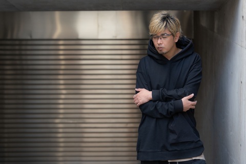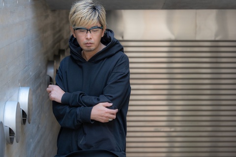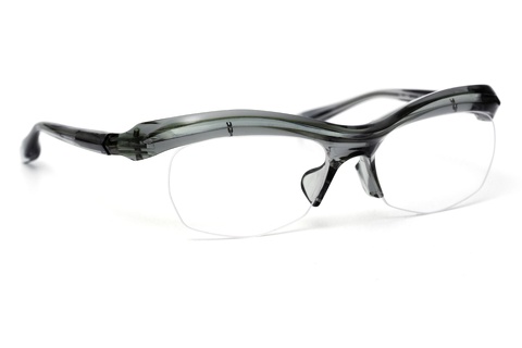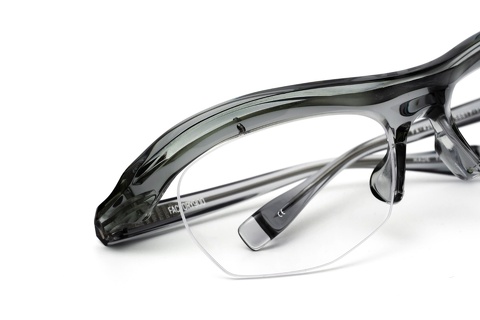 ブローフレームはデザイン上、眉のラインが強調されやすく、特にFACTORY900のような厚みある力強いブローフレームであればなおさらです。しかし、こちらの「col.493」(ブルーグレー)はクリア系のカラーということもあり、肌にも馴染みやすく特徴的なスリットの様子も至近距離でなければ強調されることはありません。