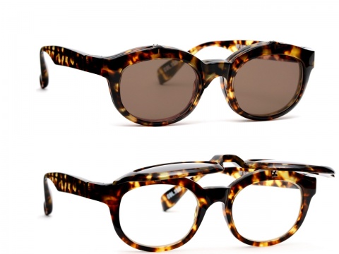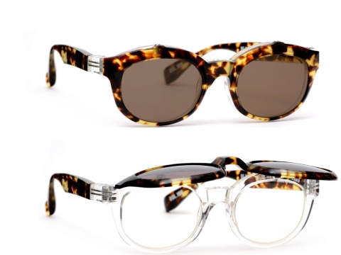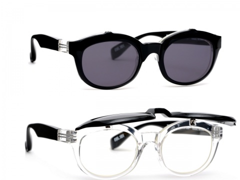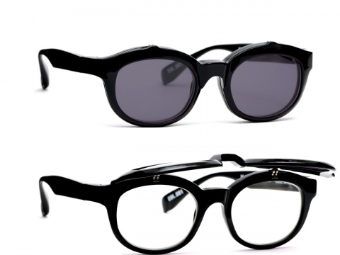 本来は機能的な用途として作られた跳ね上げ式のメガネ・サングラスを、近年ではファッションアイテムとしてご提案することが見受けられます。事実、この数年スタイリストさんから跳ね上げ式のメガネ・サングラスをお探しという声も多く耳にします