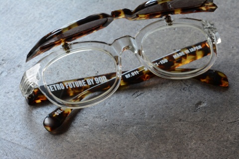一般的にはメタルパーツを用いたコンビネーションフレームが一般的ですが、「RF-011」のようなアセテート同士のコンビ枠はメガネ業界広しといえどもFACTRORY900だけではないでしょうか。