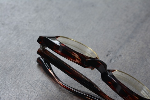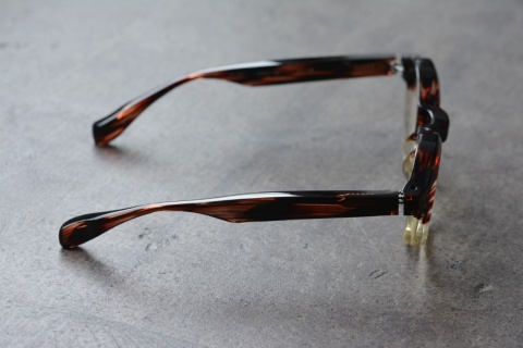 その肉厚でボリュームのあるフロントは、ここ最近のモデルでいえば「RF-041」をイメージさせますが、フロントだけではなくテンプルの太さ、さらにいうならばフロントをカタチづくる面造形は全くのベツモノです。