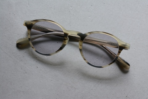 col.824(白ササ)にはグレイを組み合わせたところ、全体的に統一感が増しフレームカラーがワントーン抑えられたように感じます。このようにフレームカラーとレンズカラーはお互いに干渉し合って様々に印象を変えます。