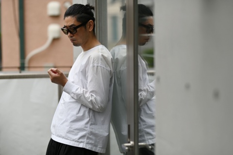 どうしてもボリューミーな「RF-008」がキメキメのサングラスになりがちですが、レンズの濃度を薄くすることで”こなれ感”を演出します。