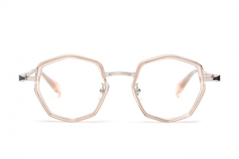 本来であればお顔の表情がぼやけてしまってもおかしくないパールピンクですが、「RF-055」のカット面と多角形のレンズシェイプによってフェイスライを整え適度なメリハリを残します。