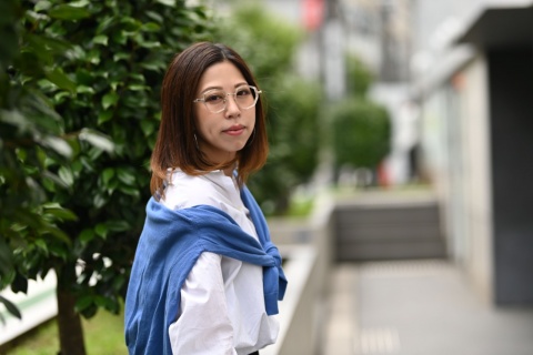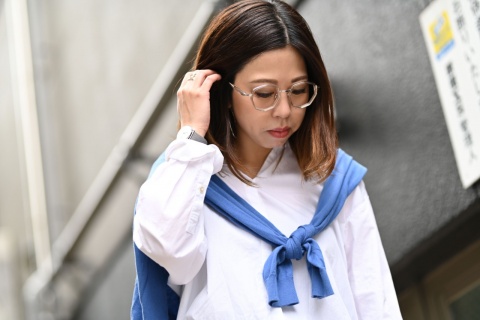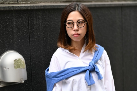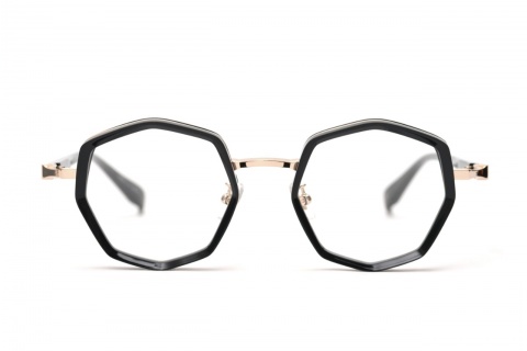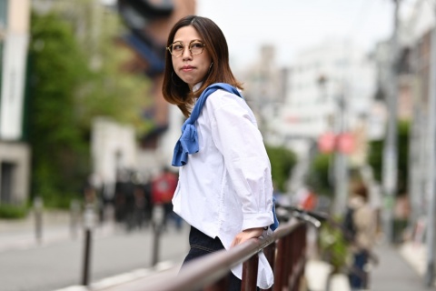 お顔の表情がハッキリするのはもちろんのこと、このスタイルサンプルを見る限り、変則的な玉型でありながらビジネスシーンでの活躍も期待できます。本来であれば、見た目の強さに負けてしまいがちな「col.001」ですが、カット面とゴールドのメタルパーツによって女性の皆さんにもチャレンジしていただきやすい「col.001」に仕上がりました。